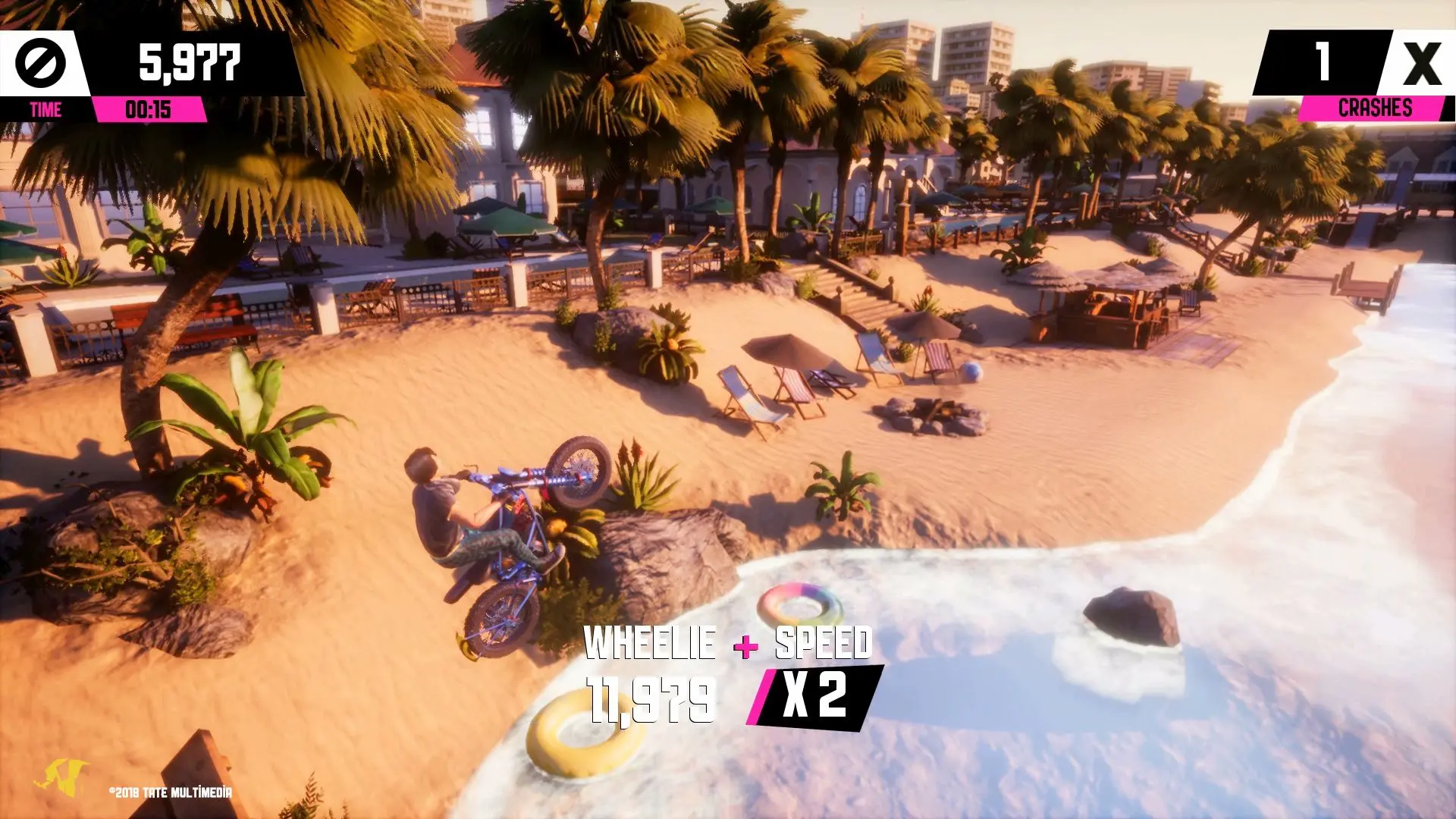 With a vibrant, sun-soaked background and chilled out atmosphere setting the scene for some truly breathtaking stunts, get ready to flip, trick and roll over palm trees and golden sands dunes.